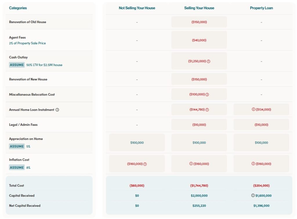 Let’s assume you have a house with a $2,000,000 valuation that you are considering to sell. The table below compares the options.